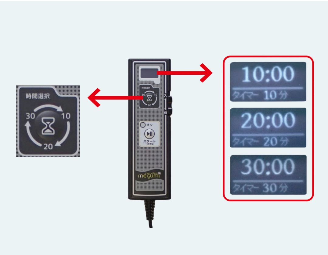 10分・20分・30分とお好きな時間がお選びいただけるタイマー付きで、消し忘れの心配もありません。
